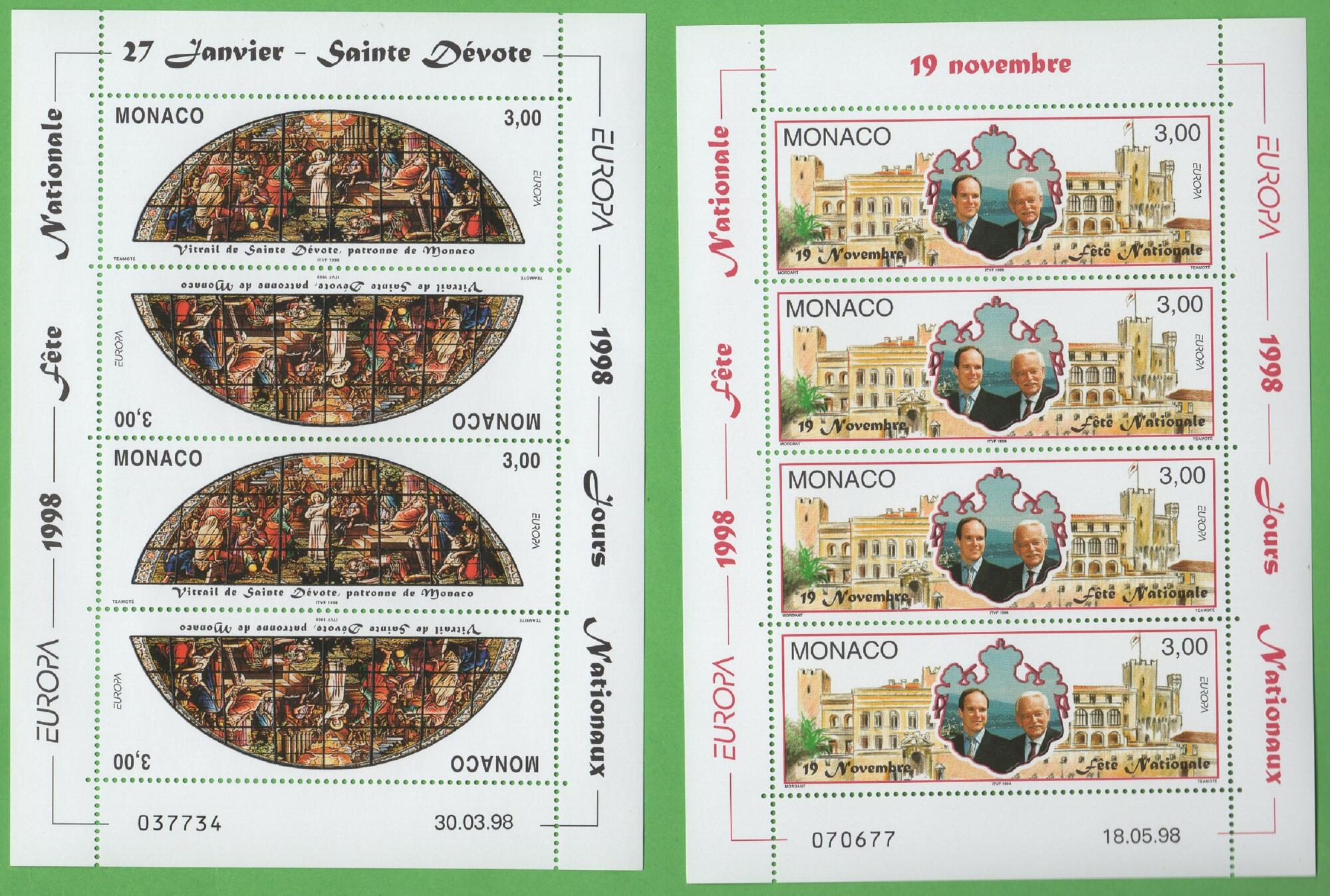 Serie di 2 francobolli emessi in minifogli di 4 valori
