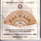 Lire 500 in argento celebrativa del Bicentenario della nascita di Gioacchino Rossini