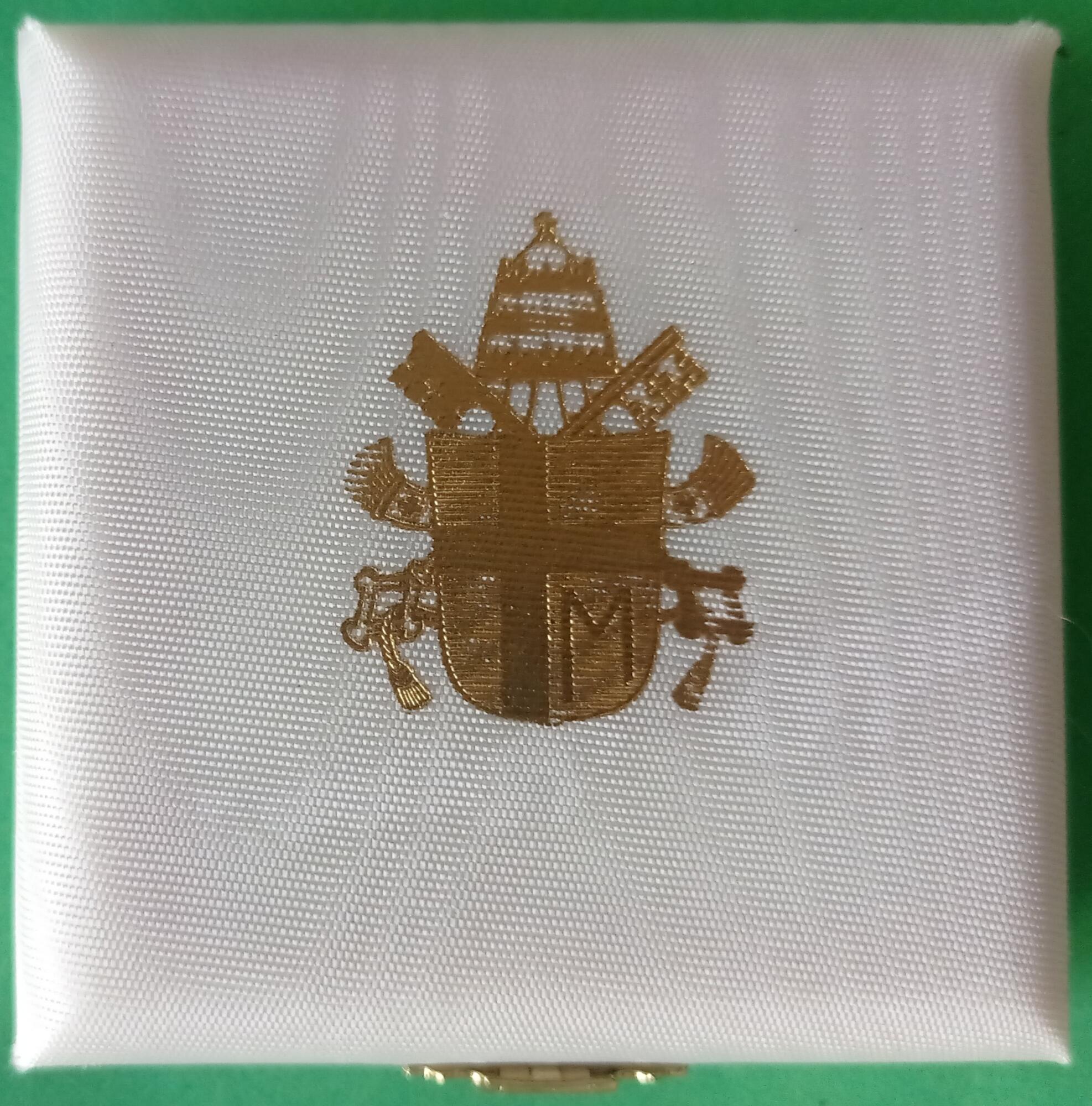 Moneta e asticcio in perfette condizioni, scatola in cartone che contiene l’astuccio leggermente macchiata in un angolo