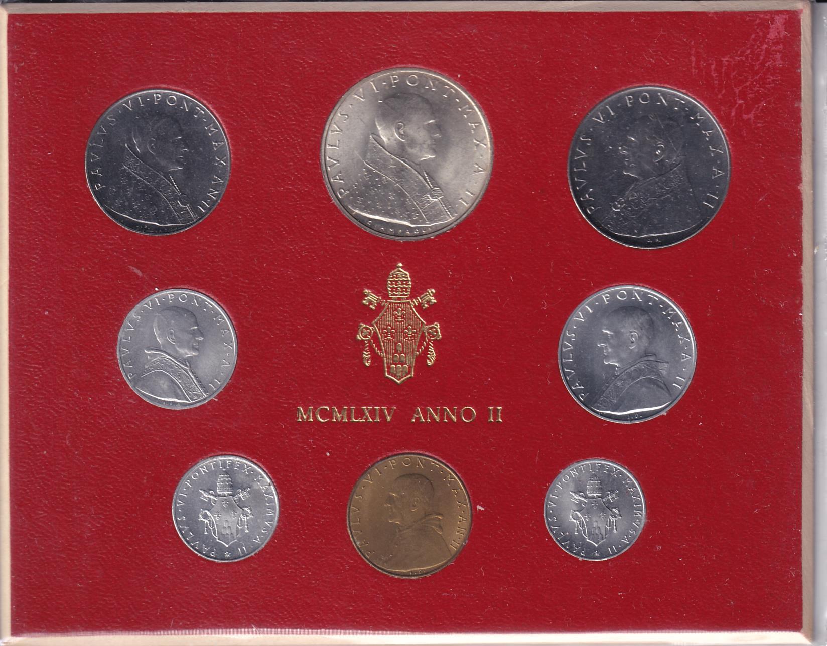 Serie di 8 valori con n. 1 moneta da Lire 500 in argento Papa Paolo VI