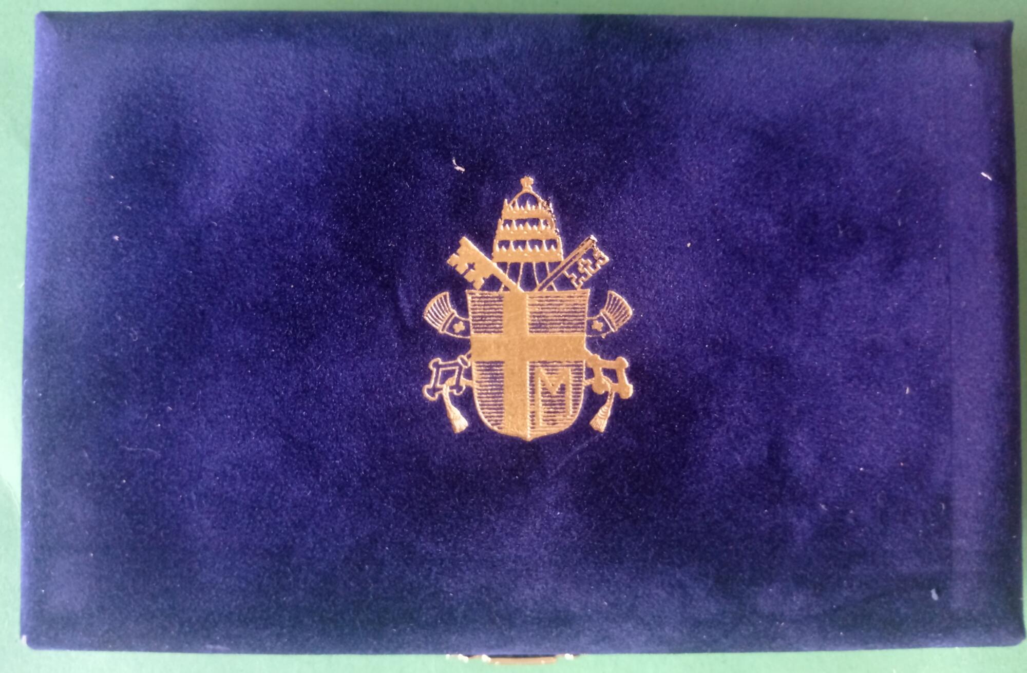 Monete e astuccio in perfette condizioni, scatola in cartone che contiene l’astuccio leggermente macchiata in qualche punto
