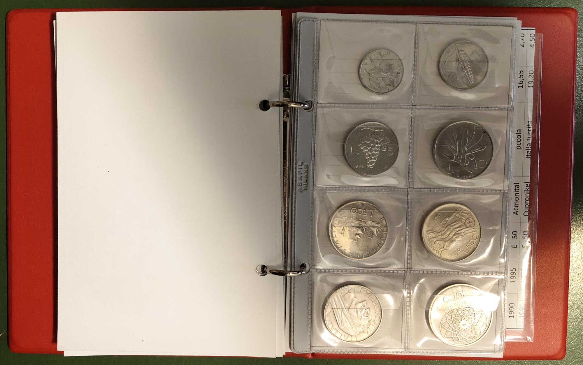Raccolta da Lire 1 a Lire 1000 di un esemplare per ogni tipologia, ordinarie e commemorative