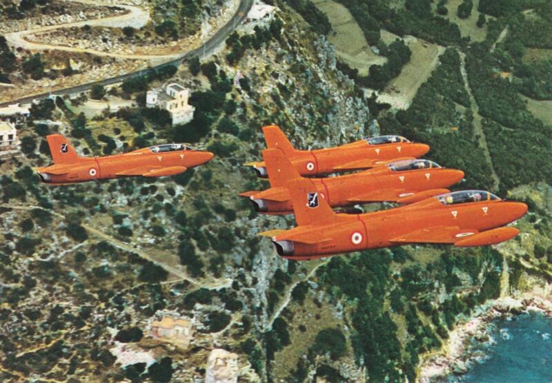 Serie di 7 Cartoline con Folder di Aeronautica Militare 46esima Brigata Pisa raffiguranti raffiguranti diversi aerei in volo