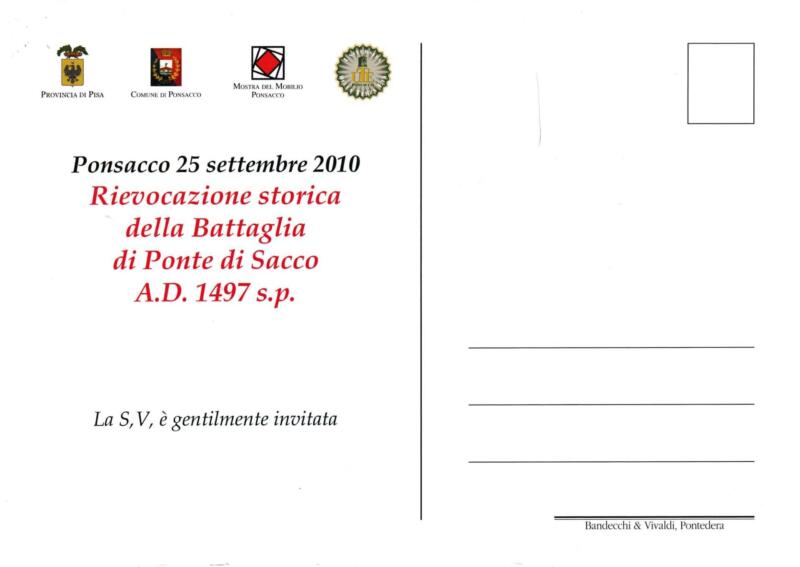 Cartolina Ponsacco (Pisa) Battaglia di Ponte di Sacco 29-30-31 luglio A.D. 1497 s.p.