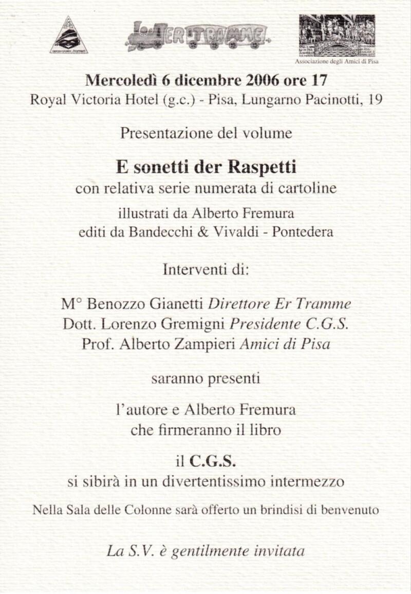 Cartolina Pisa Serie Er Tramme In occasione della presentazione del libro G. Raspetti E sonetti der Raspetti Bandecchi e Vivaldi Editori Pontedera