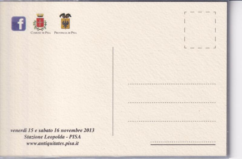 Cartolina Pisa Antiquitates mostra mercato di stampe, carte geografiche e libri antichi 15-16 novembre 2013 Stazione Leopolda Pisa