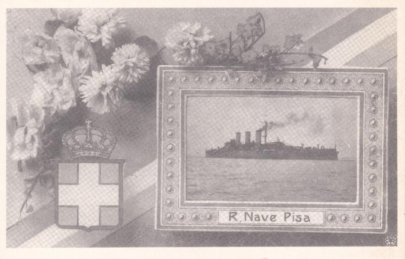 Serie di 6 Cartoline riproduzioni del Folder Regia Nave Pisa edita nel 1906 per il varo e la consegna della bandiera delle Signore Pisane alla regia Nave Pisa