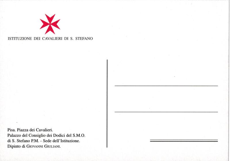 Cartolina Pisa Istituzione dei Cavalieri di Santo Stefano Palazzo del Consiglio dei Dodici del S.M.O. di S. Stefano P.M. Piazza dei Cavalieri Riproduzione di dipinto di Giovanni Giuliani