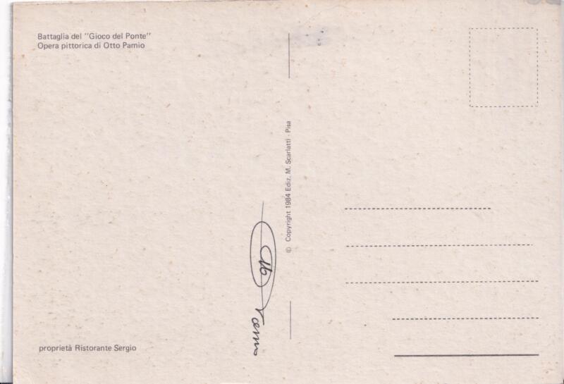 Pisa Cartolina Gioco del Ponte - opera di Otto Pamio con firma autografa