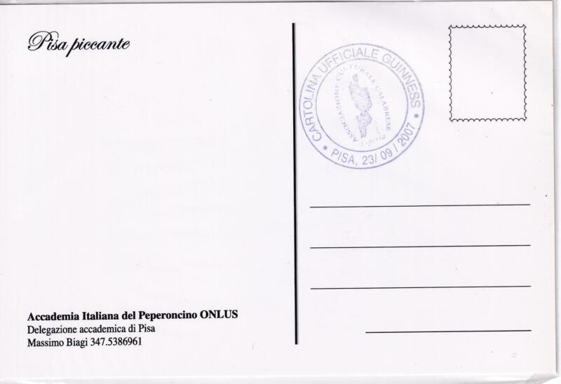 Cartolina Pisa Piccante – Accademia Italiana del Peperoncino ONLUS Delegazione Accademica di Pisa Anno 2007
