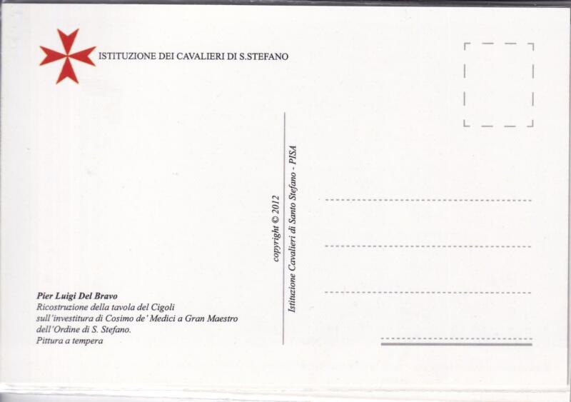 Cartolina Pisa Istituzione dei Cavalieri di Santo Stefano - Riproduzione di pittura a tempera opera di Pier luigi Del Bravo Anno 2012