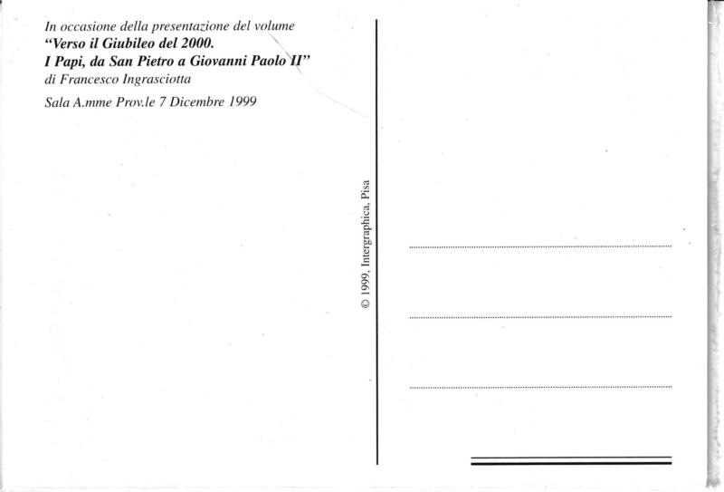 Cartolina Pisa In occasione della presentazione del volume ‘Verso il Giubileo del 2000. I Papi, da San Pietro a Giovanni Paolo II’ di Francesco Ingrasciotta 7 dicembre 1999