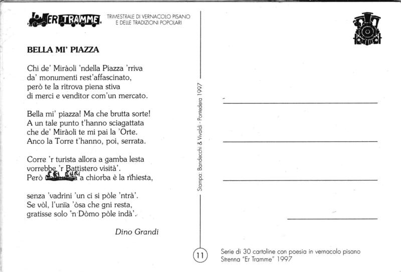 Cartolina Pisa Serie Er Tramme Bella mi’ Piazza Con Sonetto in vernacolo Pisano di Dino Grandi