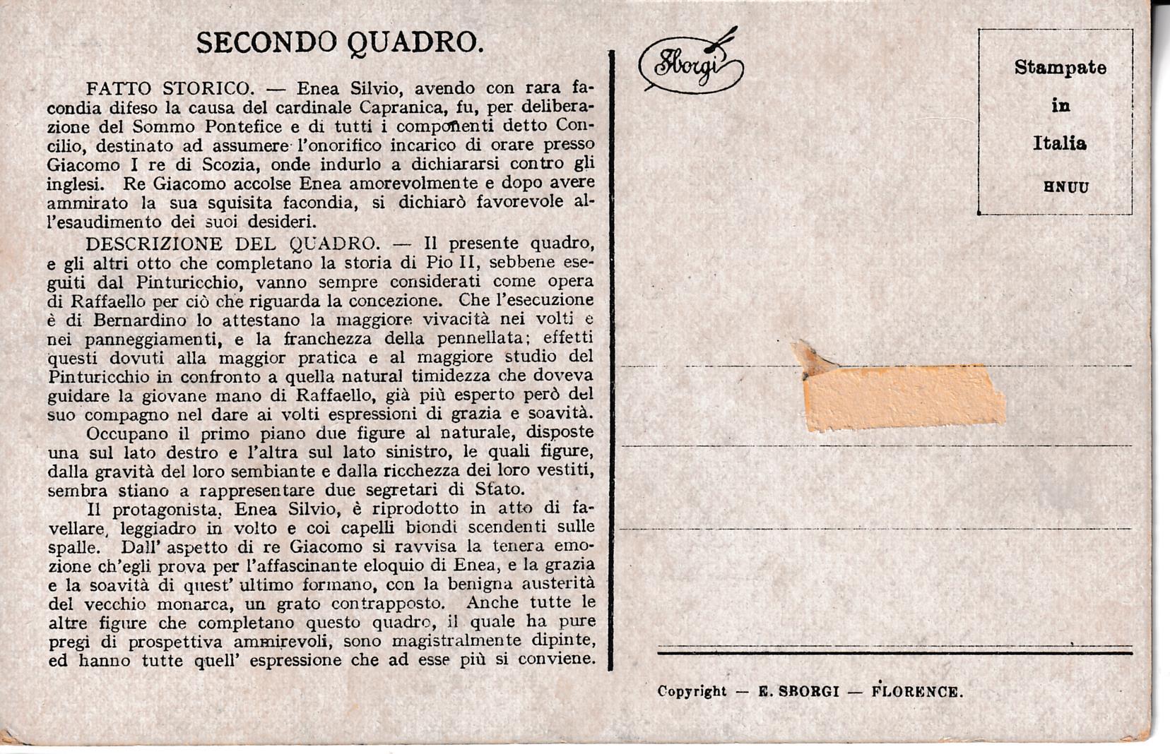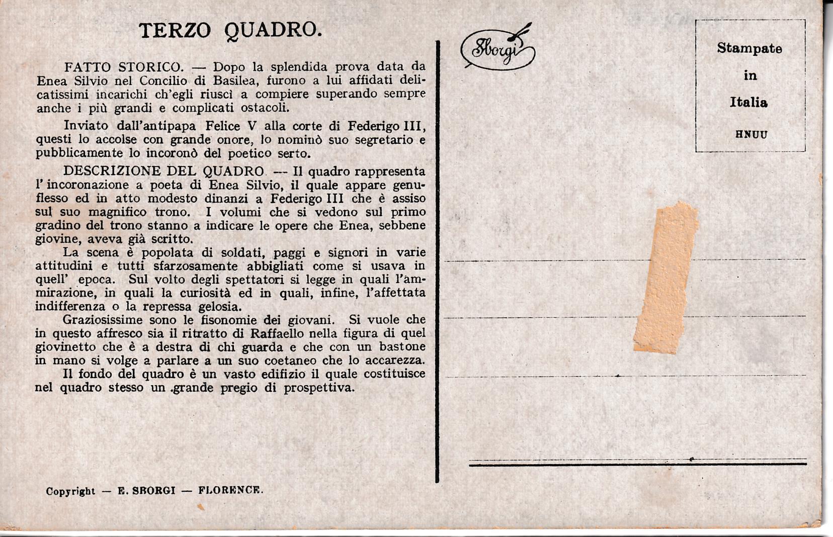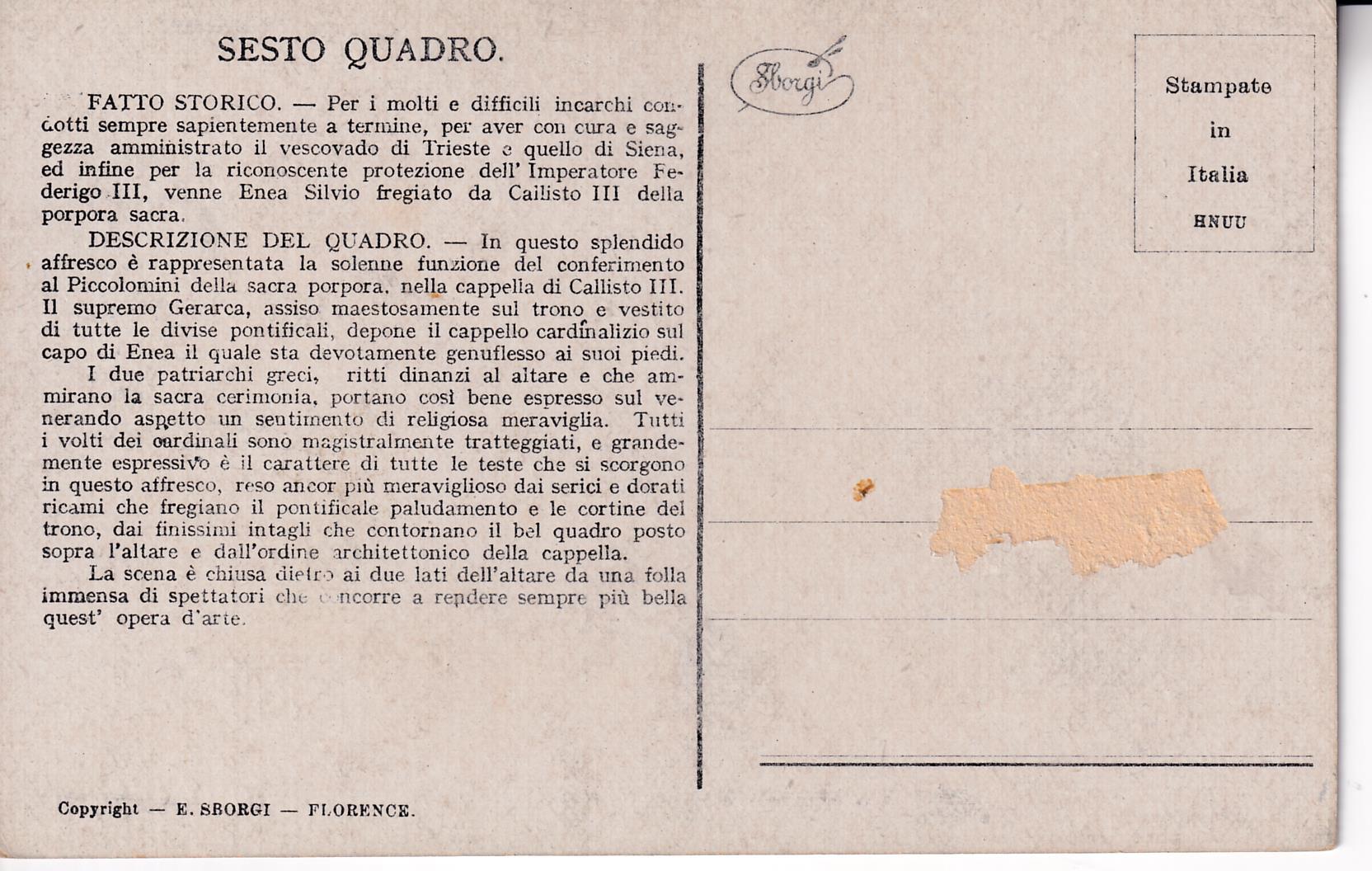 Cartolina d’epoca Serie Enea Piccolomini – Piccolomini creato Cardinale da Calisto III Sesto Quadro