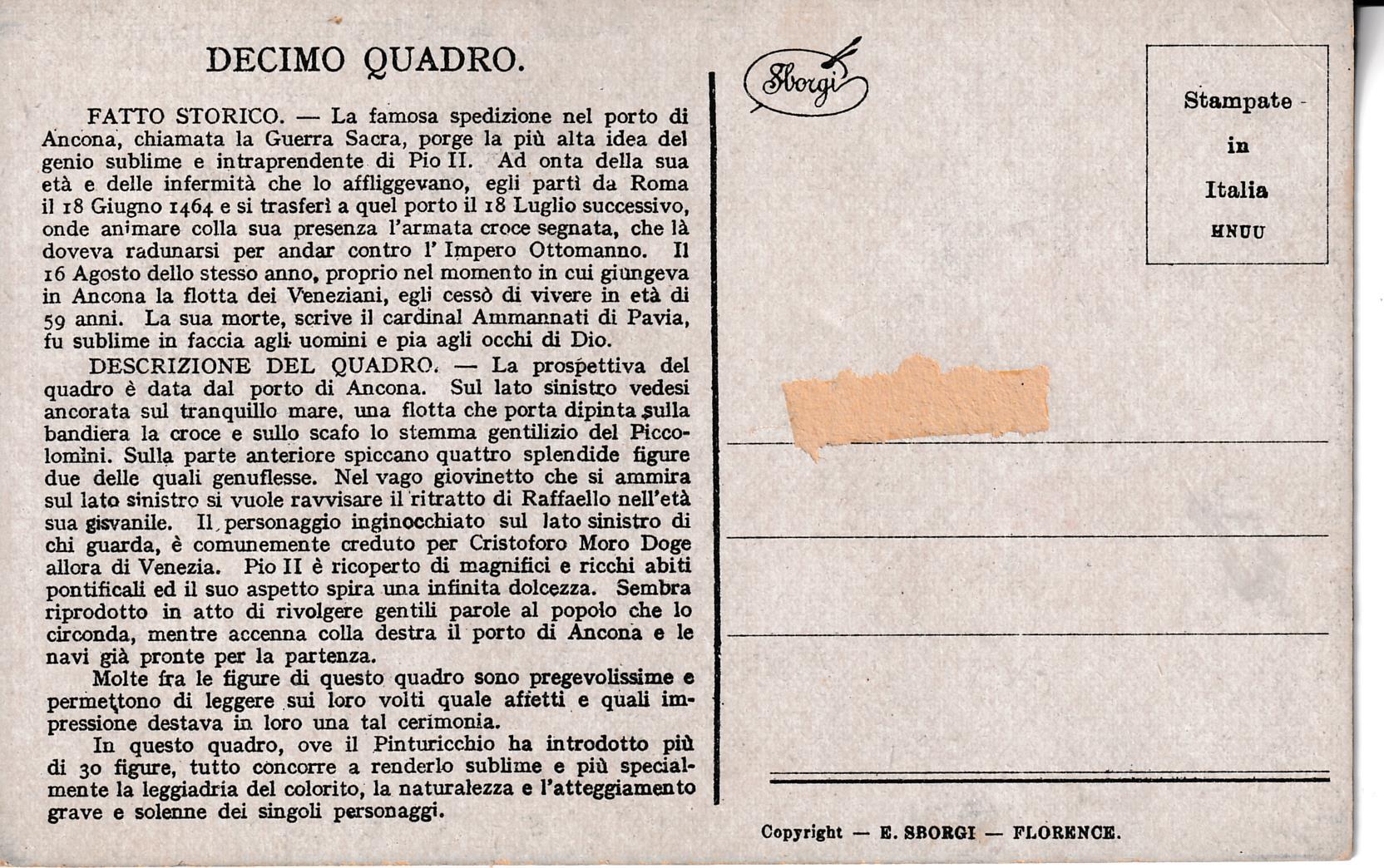 Cartolina d’epoca Serie Enea Piccolomini – Piccolomini in Ancona per affrettare la Crociata Decimo Quadro