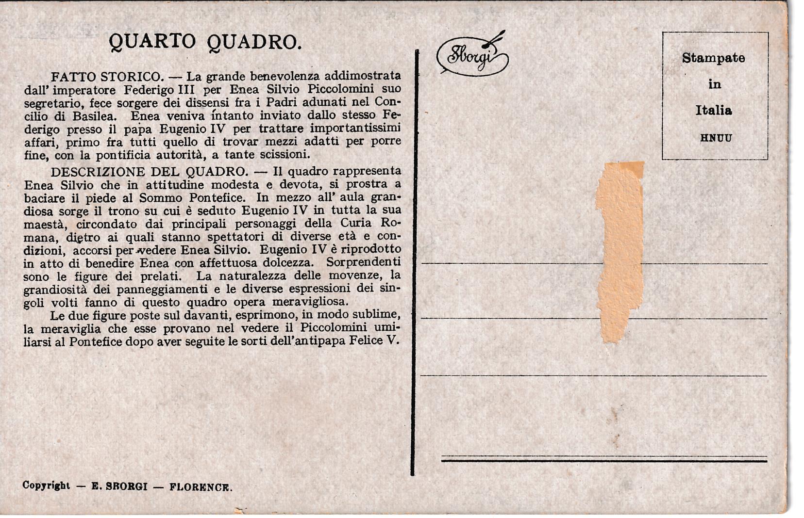 Cartolina d’epoca Serie Enea Piccolomini – Piccolomini è inviato al Pontefice Eugenio IV Quarto Quadro