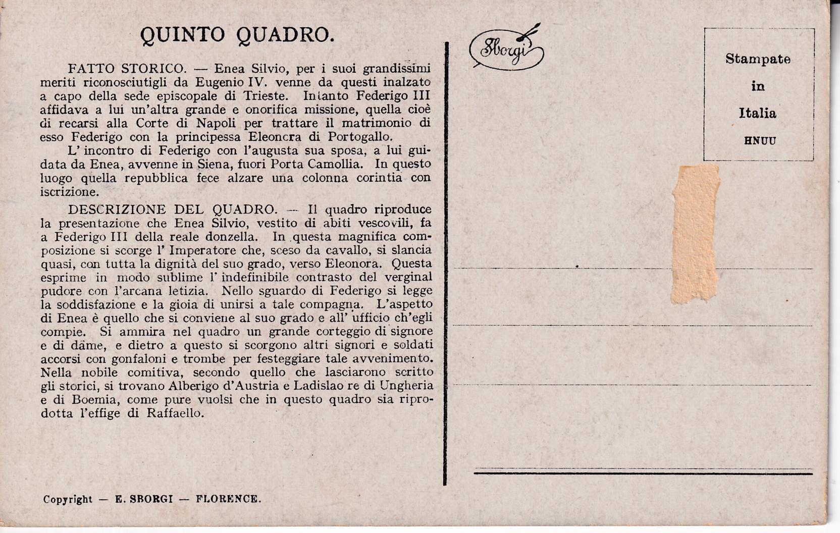 Cartolina d’epoca Serie Enea Piccolomini – Federico III sposa Eleonora di Portogallo Quinto Quadro