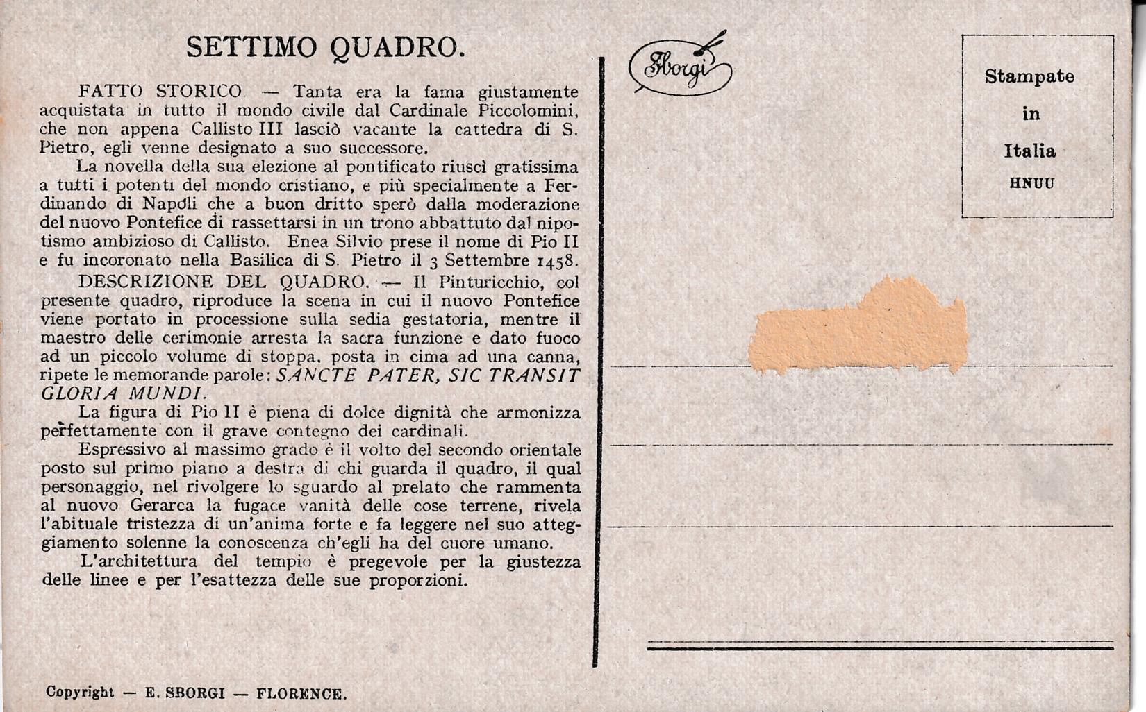 Cartolina d’epoca Serie Enea Piccolomini – Piccolomini creato Pontefice col nome di Pio II Settimo Quadro