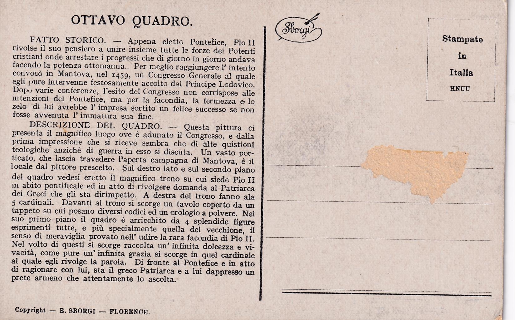 Cartolina d’epoca Serie Enea Piccolomini – Piccolomini tiene assemblea in Mantova per la Crociata Ottavo Quadro