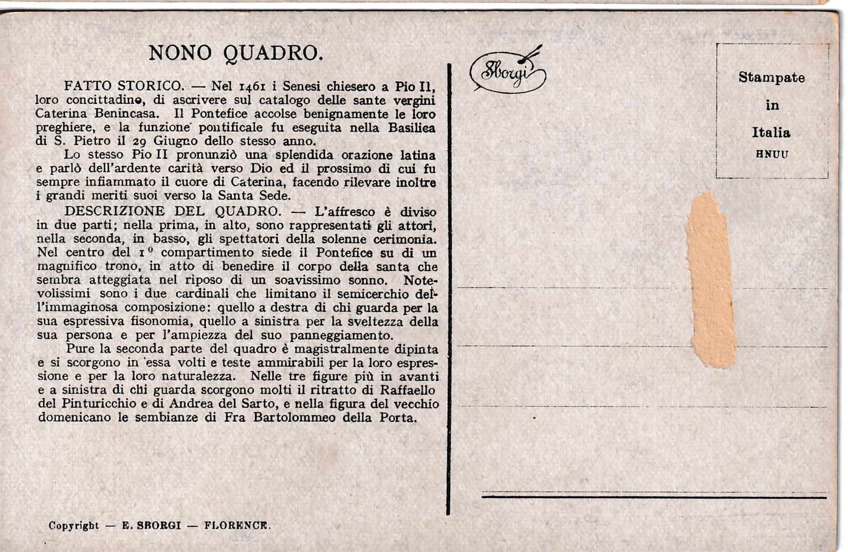 Cartolina d’epoca Serie Enea Piccolomini – Piccolomini canonizza S.ta Caterina da Siena Nono Quadro