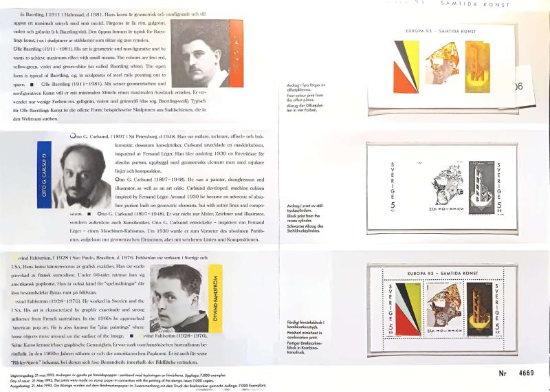 Folder Svezia Anno 1993 Francobolli Serie Europa. Arte contemporanea (BF 23)