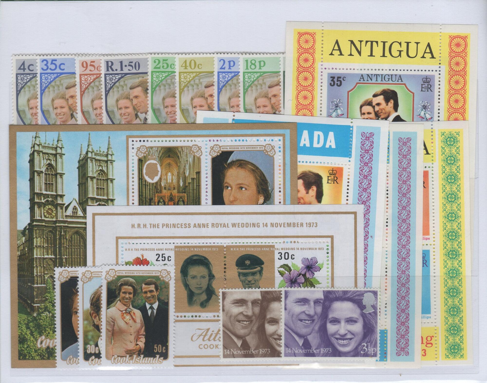 Giro completo delle emissioni di francobolli dei Paesi del Commonwealth per la celebrazione delle Nozze della Principessa Anna Anno 1973