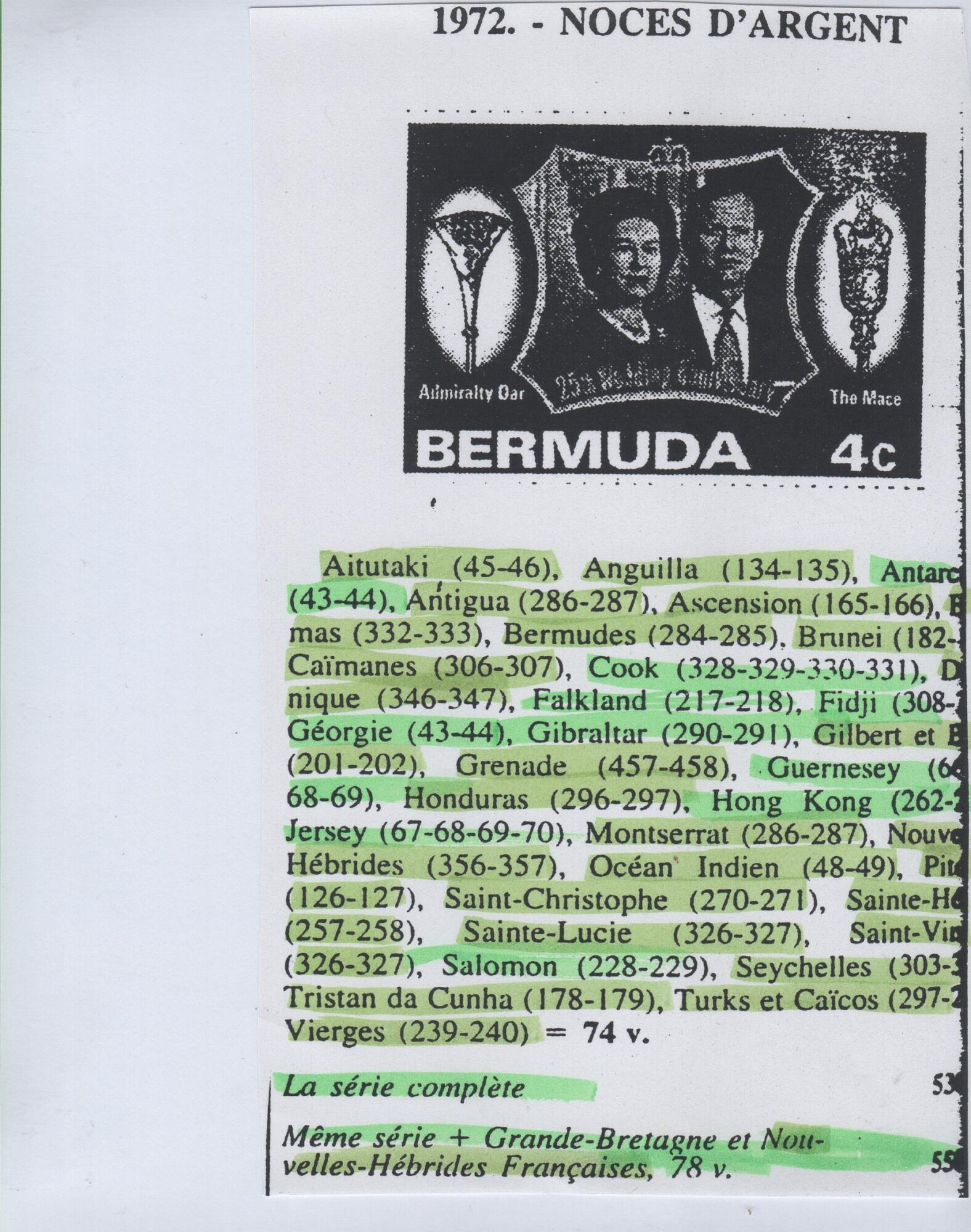 Giro completo delle emissioni di francobolli dei Paesi del Commonwealth per la celebrazione delle Nozze d’argento Reali Anno 1972
