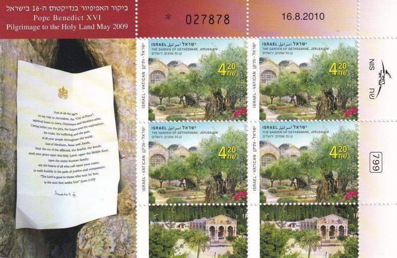 Foglietti Vaticano, Anno 2010, I viaggi nel mondo di Benedetto XVI. Emissione congiunta con Israele (BF n. 63-64-65) con il corrispondete Foglietto emesso da Israele