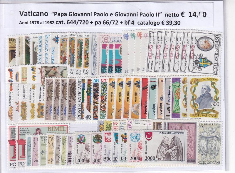 Francobolli Vaticano Anni 1978-1992 Giovanni Paolo II Annate complete