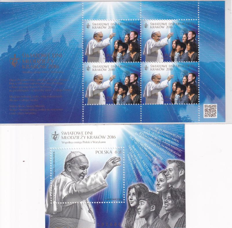 Minifoglio Vaticano, Anno 2016, 31esima giornata mondiale della gioventù. Emissione congiunta con la Polonia (MF n. 1738) con corrispondenti Minifoglio e Foglietto della Polonia