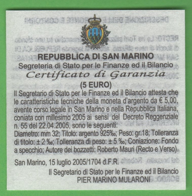 Moneta San Marino Anno 2005 Euro 5 Olimpiadi invernali Torino 2006