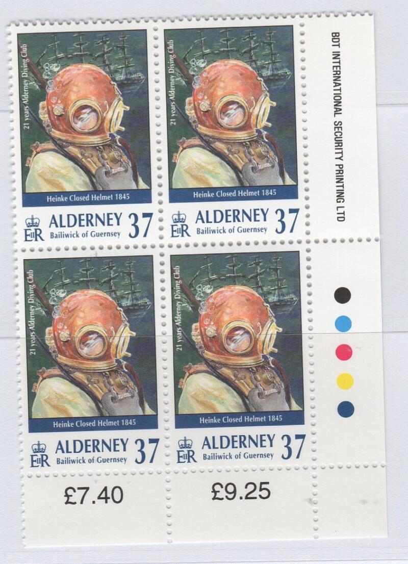 Francobolli Alderney Anno 1998 Quartine d’angolo Passatempi ad Alderney Seconda serie L’esplorazione sottomarina nelle varie epoche 21esimo anniversario del Diving Club