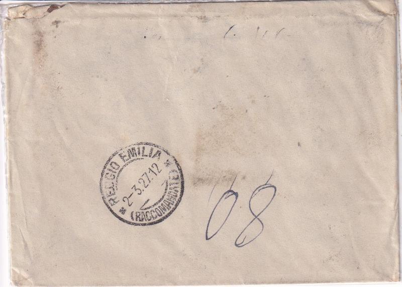 Storia postale. Raccomandata espresso da Busana 1839 del 02/03/1927 a Reggio Emilia 06/12/27