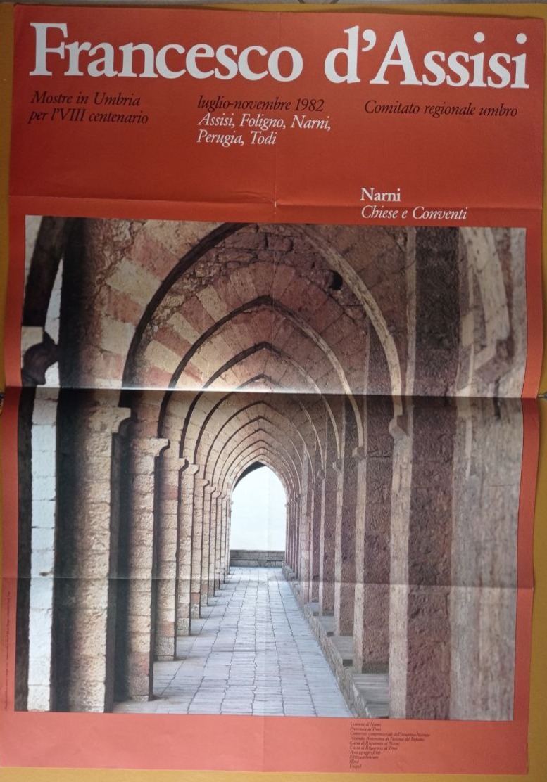 Serie di 5 manifesti pubblicitari delle mostre celebrative dell’VIII centenario di Francesco d’Assisi luglio-novembre 1982 Assisi, Foligno, Narni, Perugia, Todi
