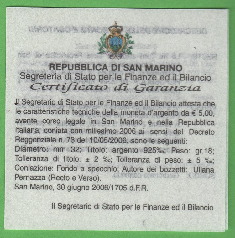 Moneta San Marino Anno 2006 Euro 5 Andrea Mantegna Proof
