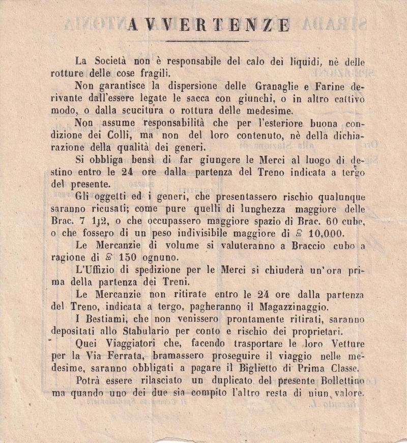 Prefilatelica. Strada Ferrata Leopolda da Firenze 3 OTT 1866 a Pisa. Contiene lo scritto