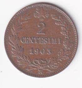 Moneta Regno d’Italia VITTORIO EMANUELE III RE D’ITALIA - 2 Centesimi 1903  Roma